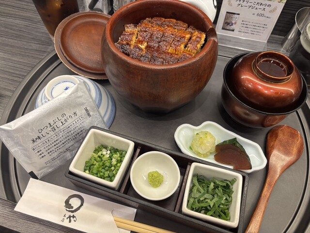 パリッと表面が焼き上がっており、うなぎはふわふわ。おだしは必要になったタイミングで呼んで追加するスタイルです。のりやネギなどおかわりも自由です。