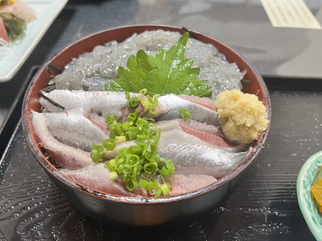 名物の海鮮丼の上の大盛...