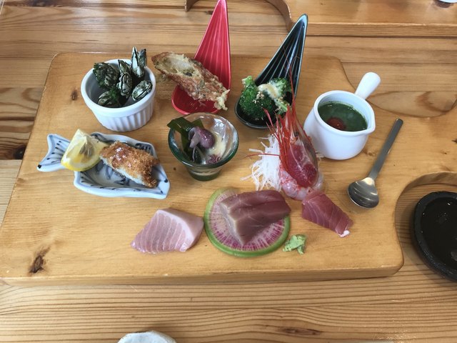 写真は最初のお刺身のプレートしか撮れてないですが、