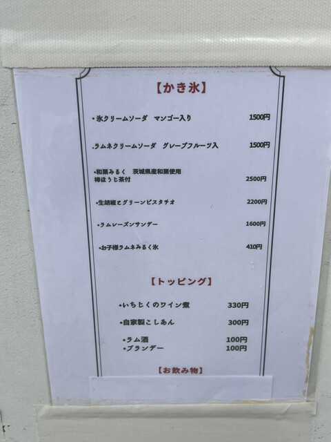 窓口のメニュー かき氷がある日とない日があります。 営業日程は、「今週の営業予定」をインスタグラムで確認。 当日メニューは当日、インスタグラムで確認。