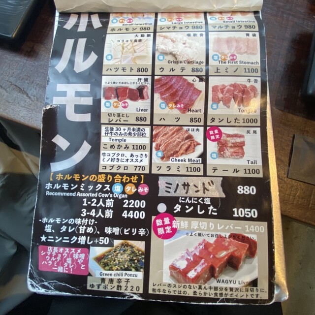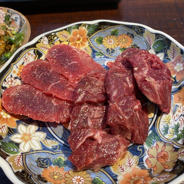 店主さんがお肉を焼いてくださったり、焼き具合や焼肉のタレ他 わさびやにんにく醤油、ポン酢など美味しい食べ方を教えてくださる。