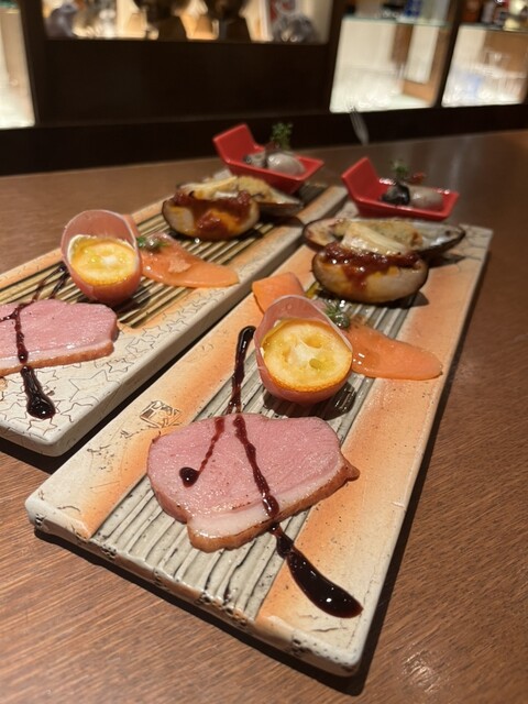 合鴨スモーク、スモークサーモン、広島県産の牡蠣、椎茸のオーブン焼きなどなどビジュアルはもちろんのこと、かなりレベルの高い料理の数々です!