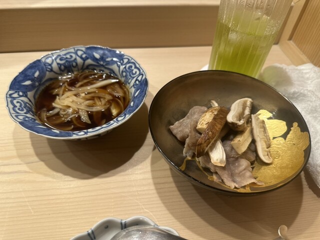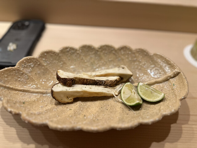 今年初の松茸。かどわきさんは、器が素敵ー。