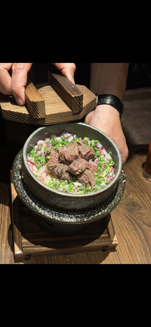 〆の「和牛ヒレ肉の釜炊きご飯」か「究極出汁の冷麺」はどちらを選ぶか迷いましたが、ヒレ肉ご飯を選んで正解。