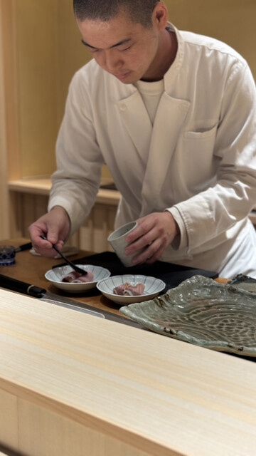 握りに入ってからもテンポが良く、シャリの温度とサイズ感がネタにきちんと寄り添っているのが伝わります。鰆や春子鯛は季節感があり、ヒラメ昆布締めは旨みの引き出し方が上品。赤身から中トロ、大トロへの流れも美しく、特に赤身の完成度が高いのが印象的でした。雲丹は香りと甘みのバランスが良く、穴子でしっかりと締め。
