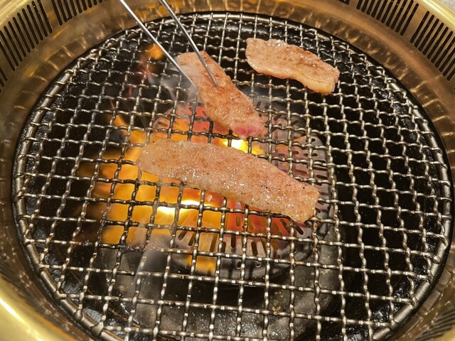 山水ブリアン!見るからに旨そう!サシの入り方サイコー!そのまま行けるんじゃないかって思う!これも数秒待って、返してまた数秒、マジで焼き過ぎNG!そして口の中にin!柔らかすぎる!と肉の旨味があふれ出る!旨い、美味すぎ!
