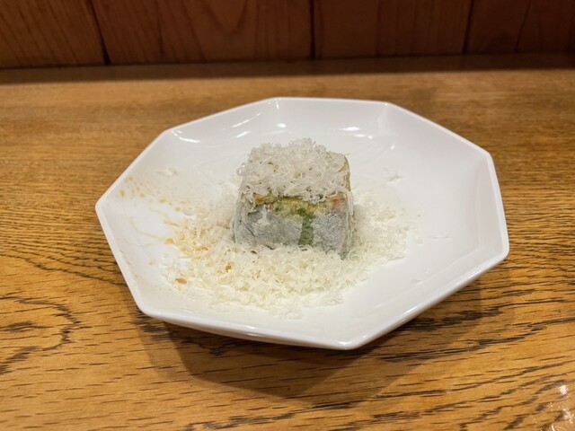 見た目、知ってるあん肝じゃない、(当然かー、)ひと口、何これー!旨い!メチャクチャ柔らかくて濃厚なコクと旨味!当然、Japanese酒しかないでしょー!残り少ない獺祭で流し込む、、完璧!