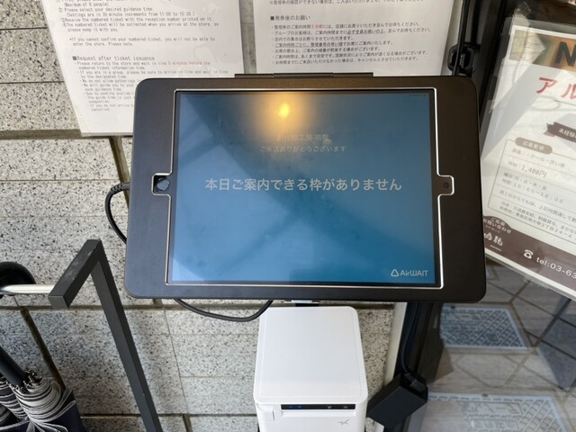 整理券受付タブレット