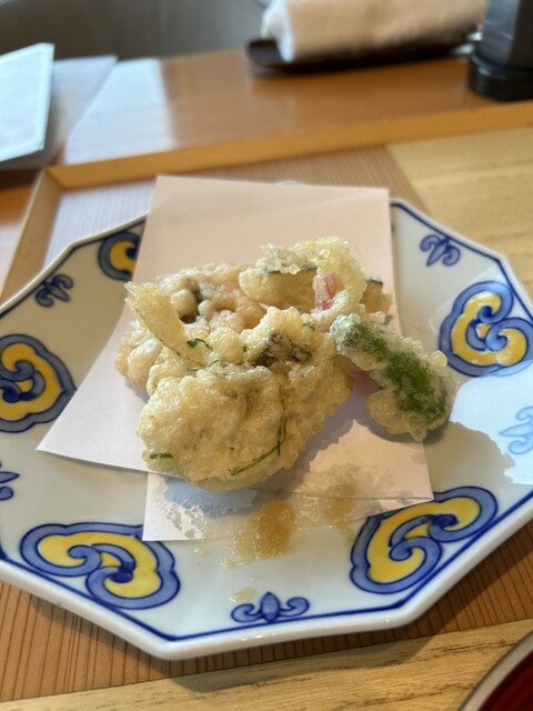 青豆豆腐、酒肴盛り合せ、蛤の香草焼きが美味しかったです。お造りの鯛は身がしまってプリっぷりでした。もんど岬おすすめの伊勢海老香り蒸しは絶品。あと、鱧の香り揚げ、土鍋炊き立て御飯とお供(うに味噌・ばらのり・ちりめんじゃこ)のばらのりが美味しい。ここの定番、チーズケーキ(^^)