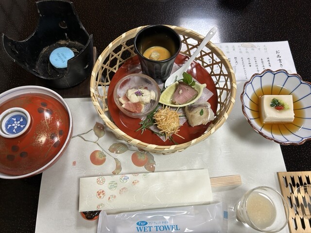 秋限定[松茸会席]一泊二食24500円のプランで利用しました。八寸の季節のお料理、炊き合せ等、全て美味しく 焼き松茸、土瓶蒸し、天ぷらなど