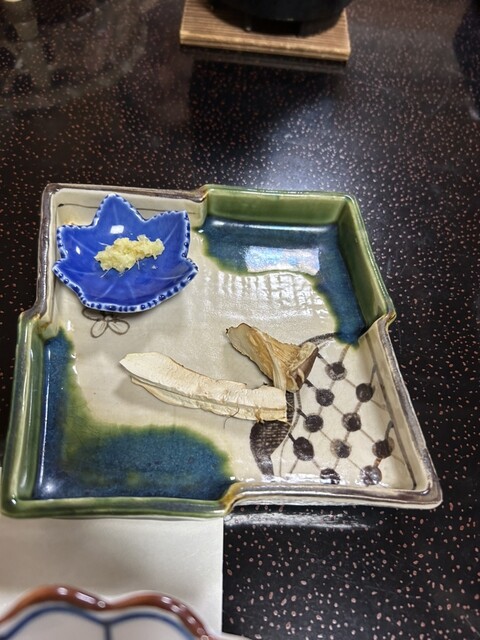 量もちょうど良く 奈良・野迫川村の立派な松茸でした。宿の名物の鯉の洗いはジュレと混ぜていただくサッパリとしていて美味しかったです。