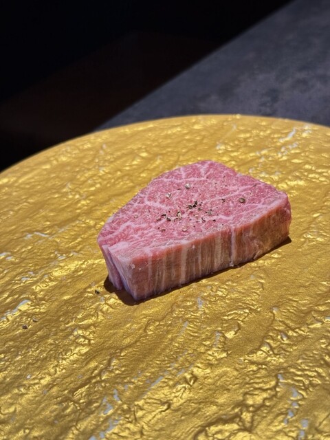 わさびと生胡椒で味わうシャトーブリアンは、強火と弱火の焼き分けでまったく違う食感に。