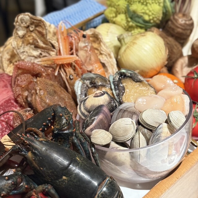 金目鯛、カンパチ、鮑、オマール海老、毛蟹、生牡蠣。