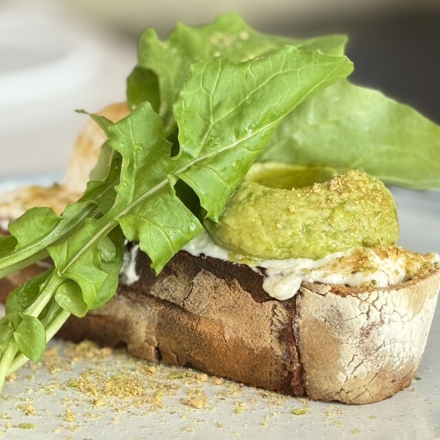 前菜は自家製チーズたっぷりのシーザーサラダを選択。コク深く満足感のある一皿。セットで提供されるエンジェルピタパンに、コブラムエステートのオリーブオイルとTRオリジナルデュカ(クミンやピスタチオの香り)がよく合い、これだけでも十分に楽しめます。