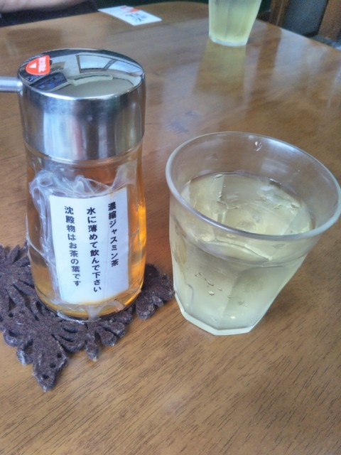お冷にジャスミン茶の濃縮エキスを入れてジャスミン茶にして飲めます。粋な計らいですね。