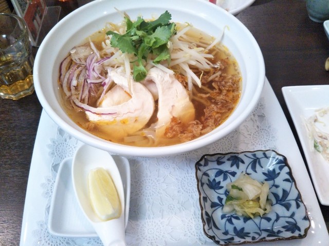 私はササミのフォーにベトナムラー油、パクチー、レモン入り。