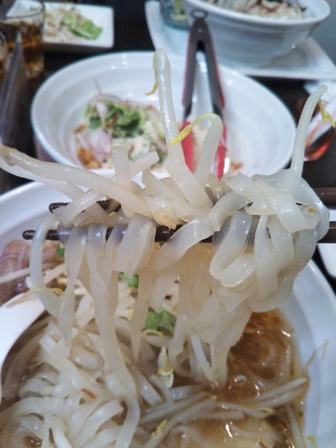 で、妻の和風フォーの味が気になってレンゲで1口頂き。ん、かなり和風味のフォーです。