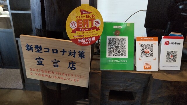 PayPay、AUPay、LinePay、GotoEat食事券が使えます。