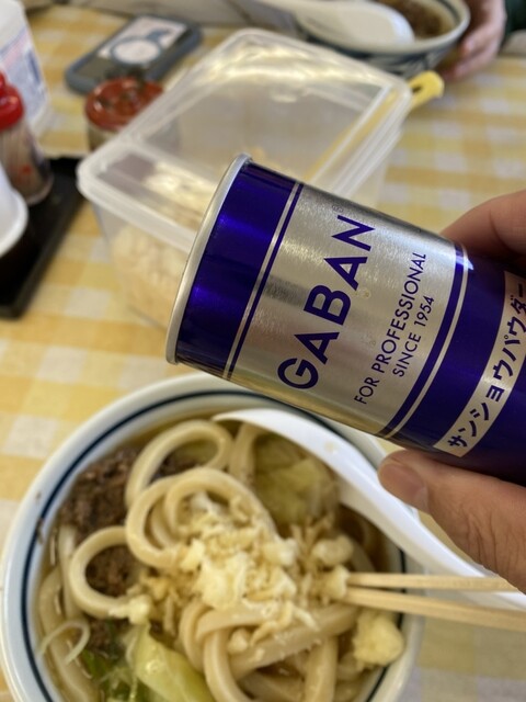 ギャバンだから胡椒かな?って先入観で入れない初心者の皆さんが多いけどコレ入れないとコチラのうどんの良さを全て味わえないと私は思ってます。