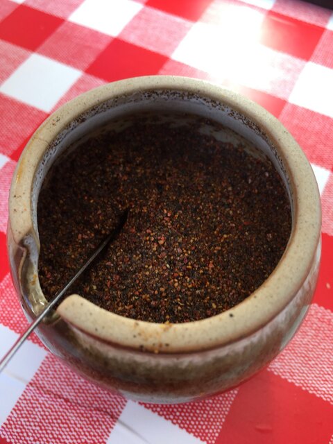 ①テーブルにあるギャバンの山椒を沢山かけましょう