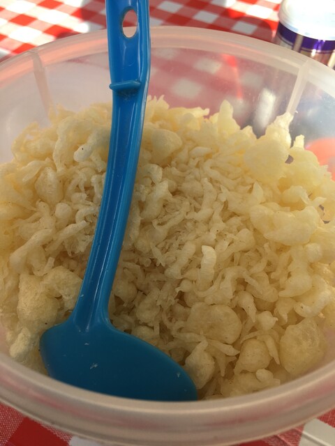 みうら系の三種の神器と言われているギャバンの山椒とスリだね、天かすバンバン入れてぐちゃぐちゃにしてから食べるのがルーティン。