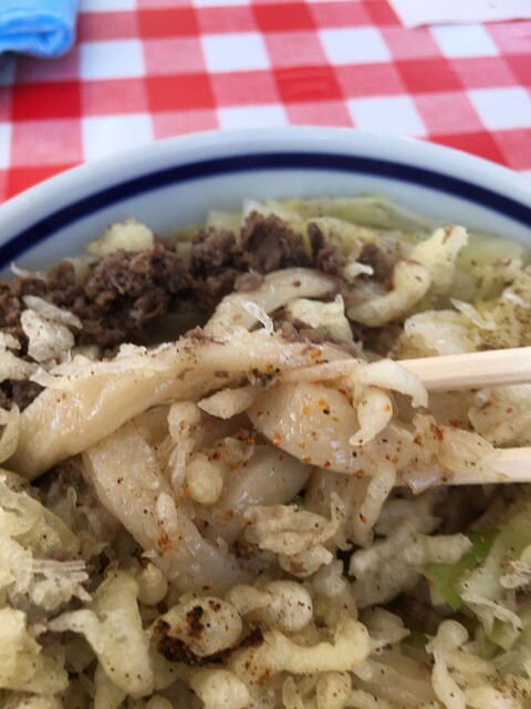 肉は馬肉のそぼろ系で最後の最後まで麺とスープと天かすに絡んで肉の旨味を出します。