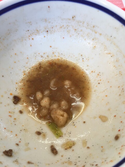天かすとすりだねを入れて最後の一滴までスープを飲み干します。