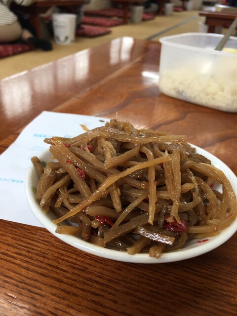 きんぴらは全く辛さを感じない子供でも食べれる柔らかいヤツ。このボリュームで50円か?!ってくらいたくさんもらえてうどんに乗せて麺とのコンビネーションを楽しみます。