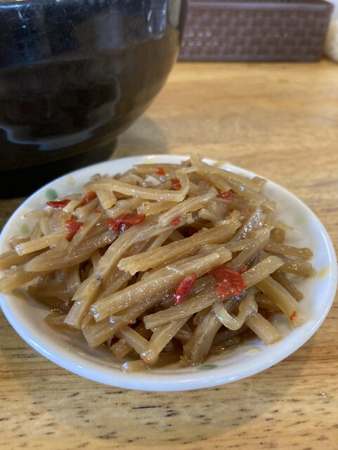キンピラと肉が入ったスープは複雑妙味で飲むほどに飲みたくなる中毒性。