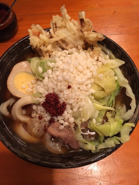 居酒屋で善光寺とだ系吉田のうどん特盛!