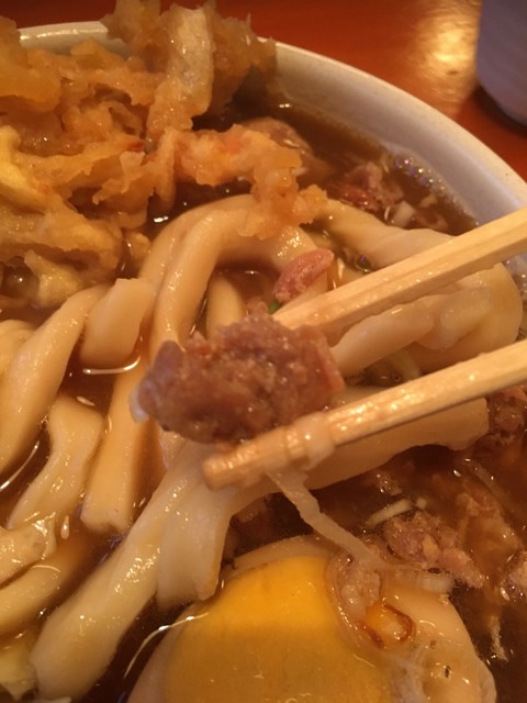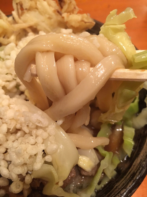 麺が固くて箸で持ち上げると立つうどんです。