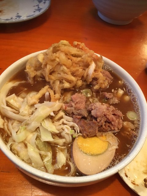 魚介系の出汁に醤油と味噌の濃い合わせスープの香りが疲れた体に沁みます〜