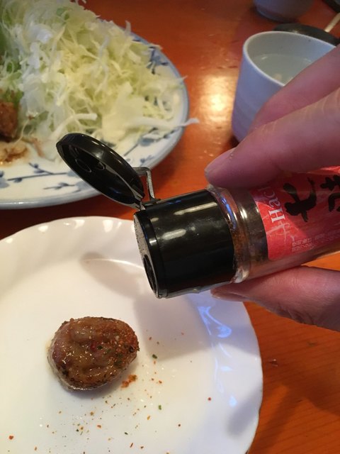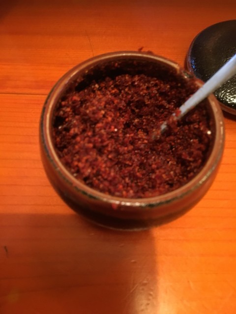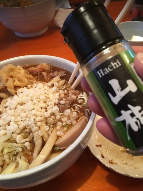 みうら系吉田のうどんの三種の神器、天かす入れ放題と山椒、すりだねもあります。