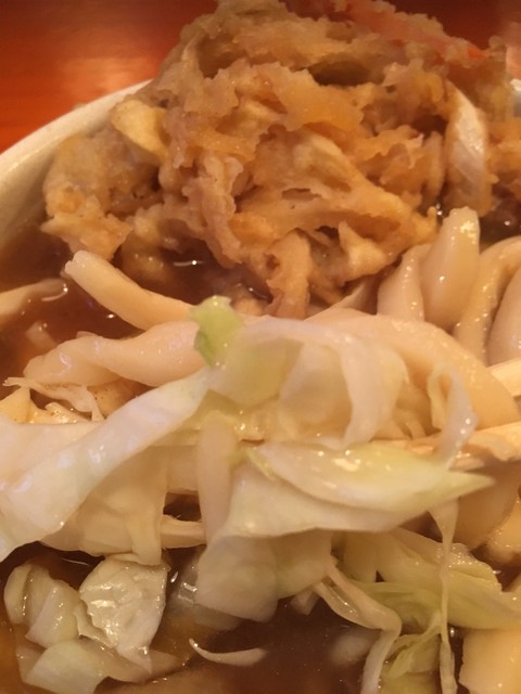 肉は豚肉でキャベツはシャキ系、天ぷらは揚げたてでサクサクしてスープにつけてもそのまま食べても文句なしに美味い!
