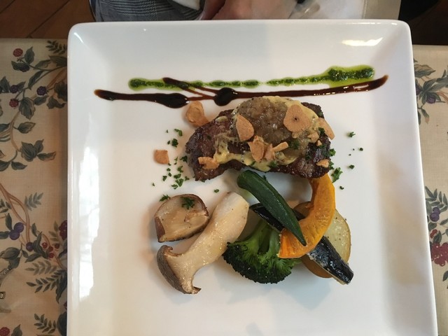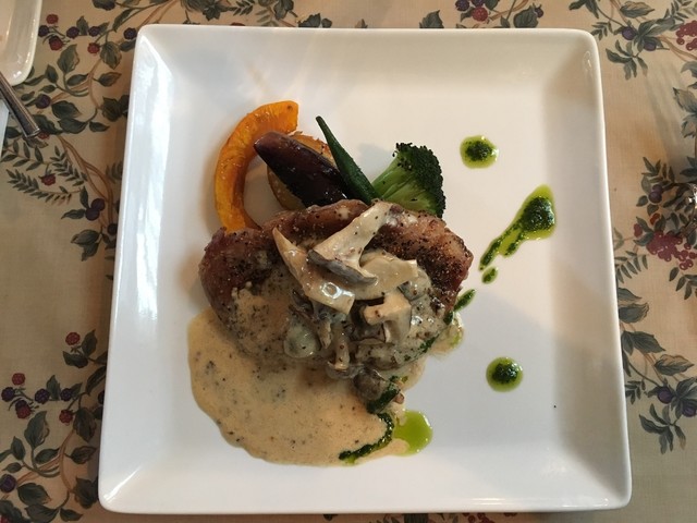 メインの富士桜ポークロースはとても濃厚なクラムチャウダーのようなクリームソースがかかっていて旬の野菜と旬のキノコを絡めて美味しくいただけます。