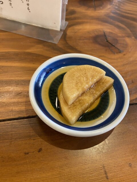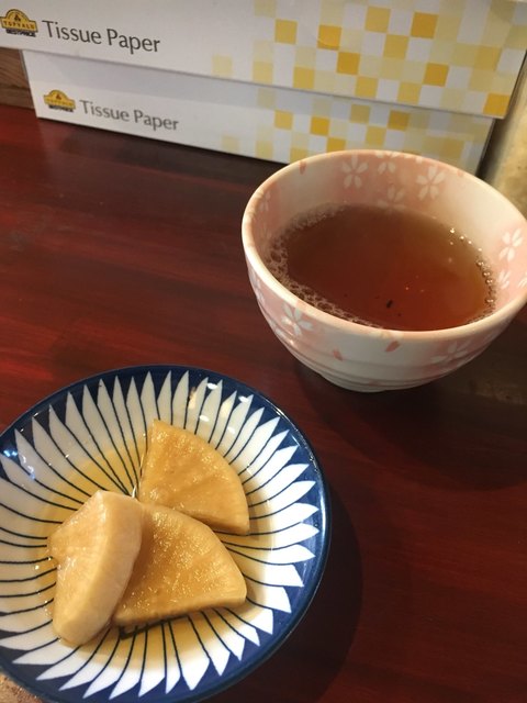 先着何名か漬物もサービスいただけます。大根の醤油の漬物でさっぱり美味しかった。