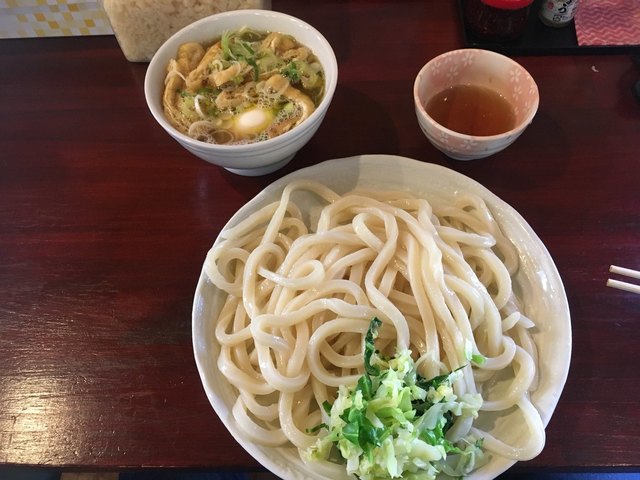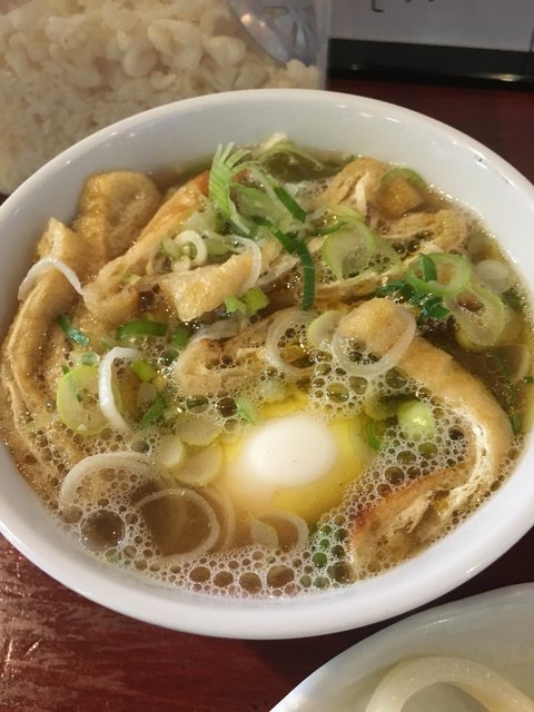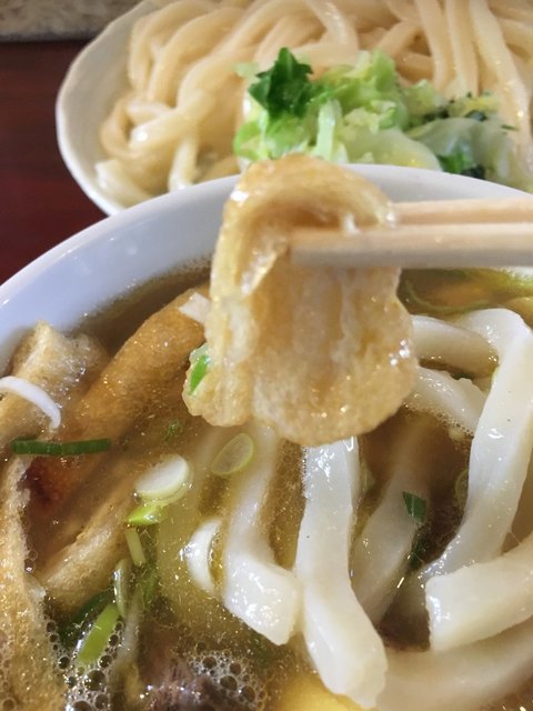 つけ汁はいかにも煮干し系なフォルムで油揚げがスープを吸って美味そう。