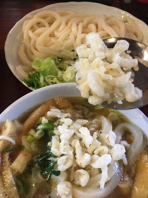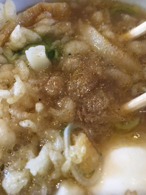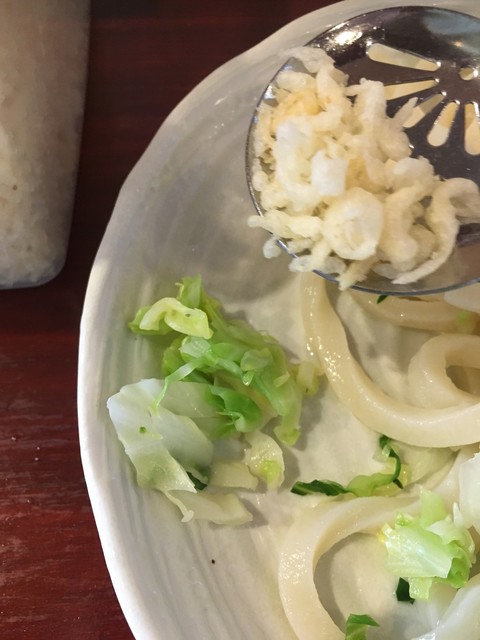 みうら系吉田のうどん三種の神器の山椒スリだね天かす入れ放題も健在でバンバン入れて美味しさ無限大!!