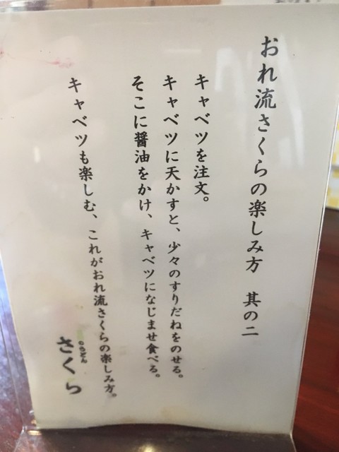 着席して給仕のお兄さんに口頭で注文を申告するスタイル。メニューもスッキリで選びやすいですね。さくらさんマーク入り半熟卵も水曜先着の方は無料だそうです。ラッキー!