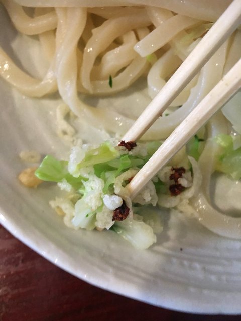 キャベツはシャキ系で歯ごたえも良くサクサク美味い!オススメのいただき方で天かすとスリダネをつけて食べてみるとこれまた美味い!