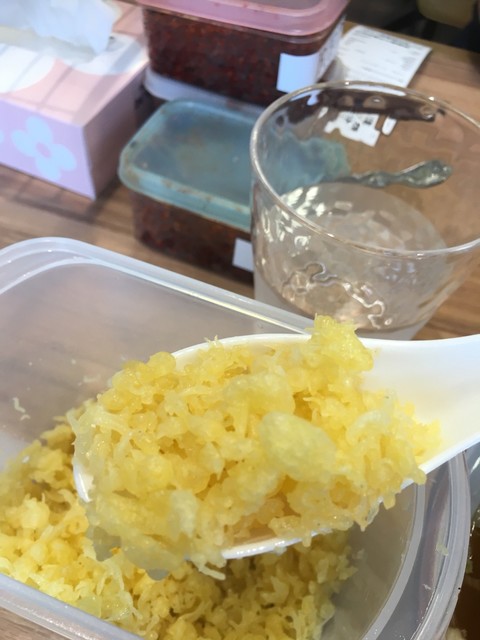 天かす入れ放題と山椒マックスすりだねを大量投入して麺をすすれば小麦と山椒の辛さがマリアージュして飲み込むのがもったいなくなるようなうまさのハーモニー。