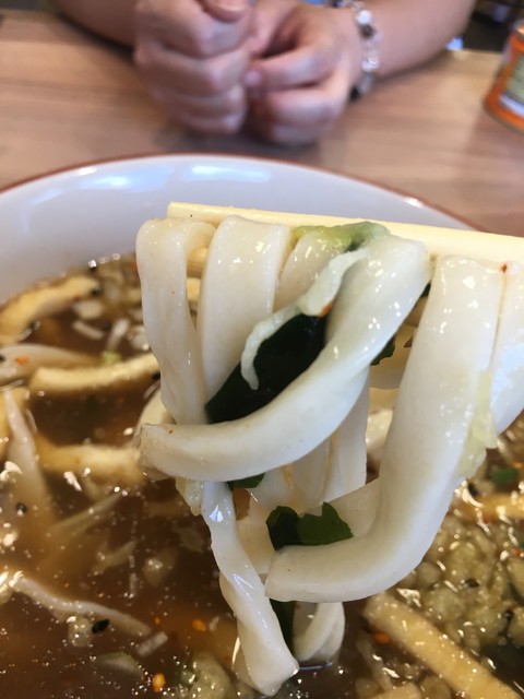 麺は昔ながらの不透明な固めで手打ちかな?ねじれがすごくてよく踏んである感じがした。茹で加減は固めで私好みでした。硬くて噛めば噛むほど小麦の香りが鼻を抜けます。