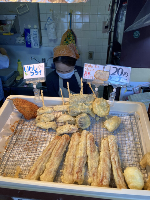 多少並びますが回転が早いらしくあっという間に厨房カウンターに到着。注文コールして会計に並ぶ間に天ぷらゲットする手法。