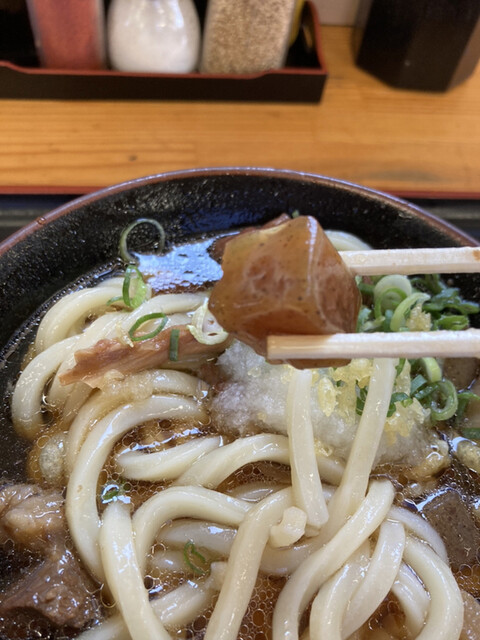 麺は小麦が香るツヤツヤで牛すじコンの柔らかさとシンクロしてジャバジャバ吸い込むようにいただけます。