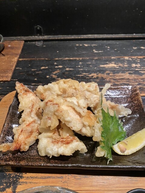 ササミ天の尋常じゃない柔らかさと外側の香ばしさ。レモンかけてそのままでも良しスープに浸しても良し。