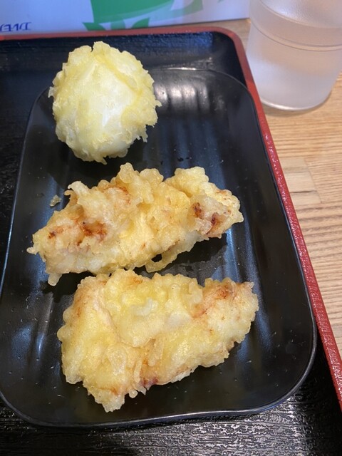 とり天は揚げたて柔らかで歯が無くても食べれるヤツ。卵天もエエ具合に半熟で好きなヤツ。