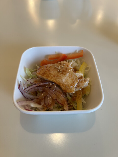 チャイニーズサラダ、焼き大根餅、揚げ餃子、さつま芋のレモン煮、ライス、ホットジャスミン茶、そしてメインの汁無し担々麺がつく超お得なランチ。