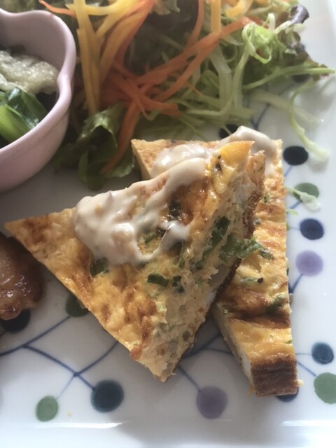 いぶりがっこのタルタルソースでいただく、肉味噌いりオムレツ