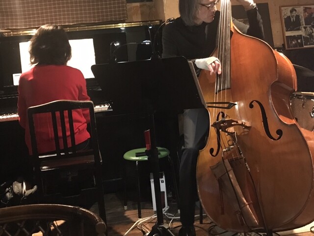 今夜はピアノ、ウッドベース、ドラムの、トリオで。
