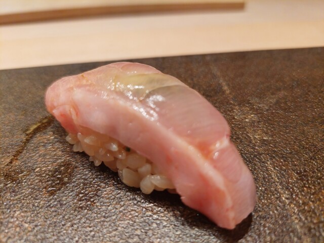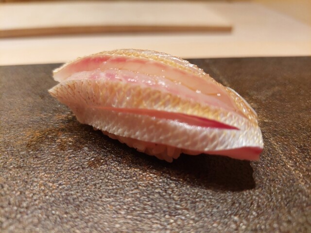 ・白甘鯛握り→赤酢のシャリと甘鯛の甘さのハーモニーが最高。
